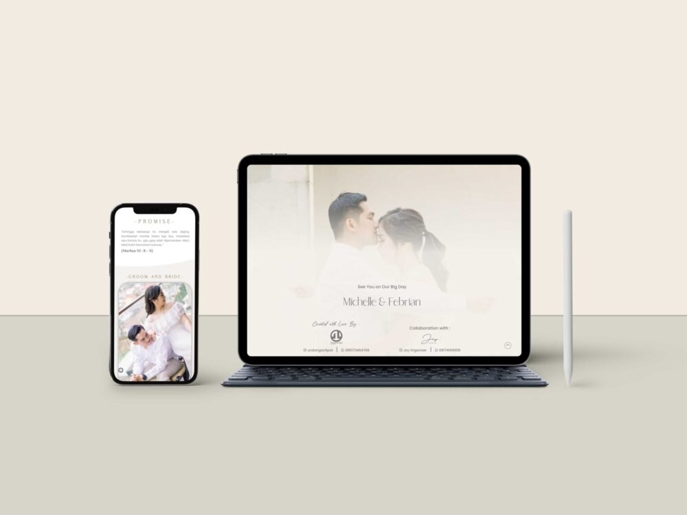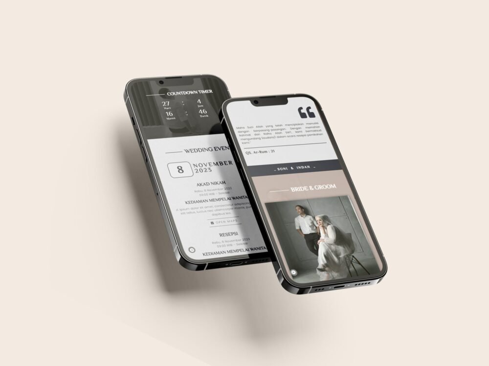 Kami sebagai vendor pembuat undangan pernikahan berbasis website dengan nuansa minimalis dan elegan, akan mempermudah calon mempelai berbagi momen spesial dengan simpel dan mudah.