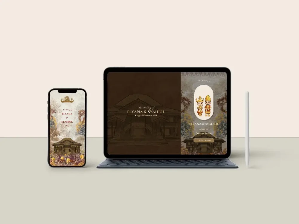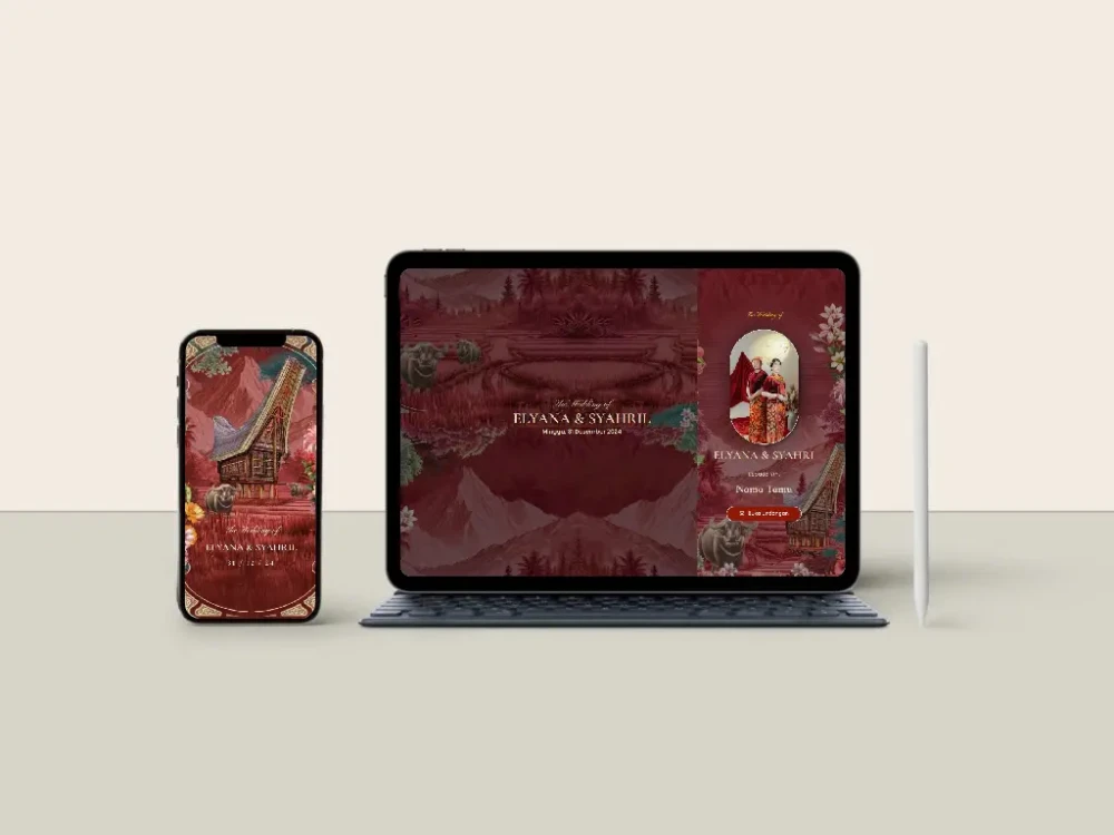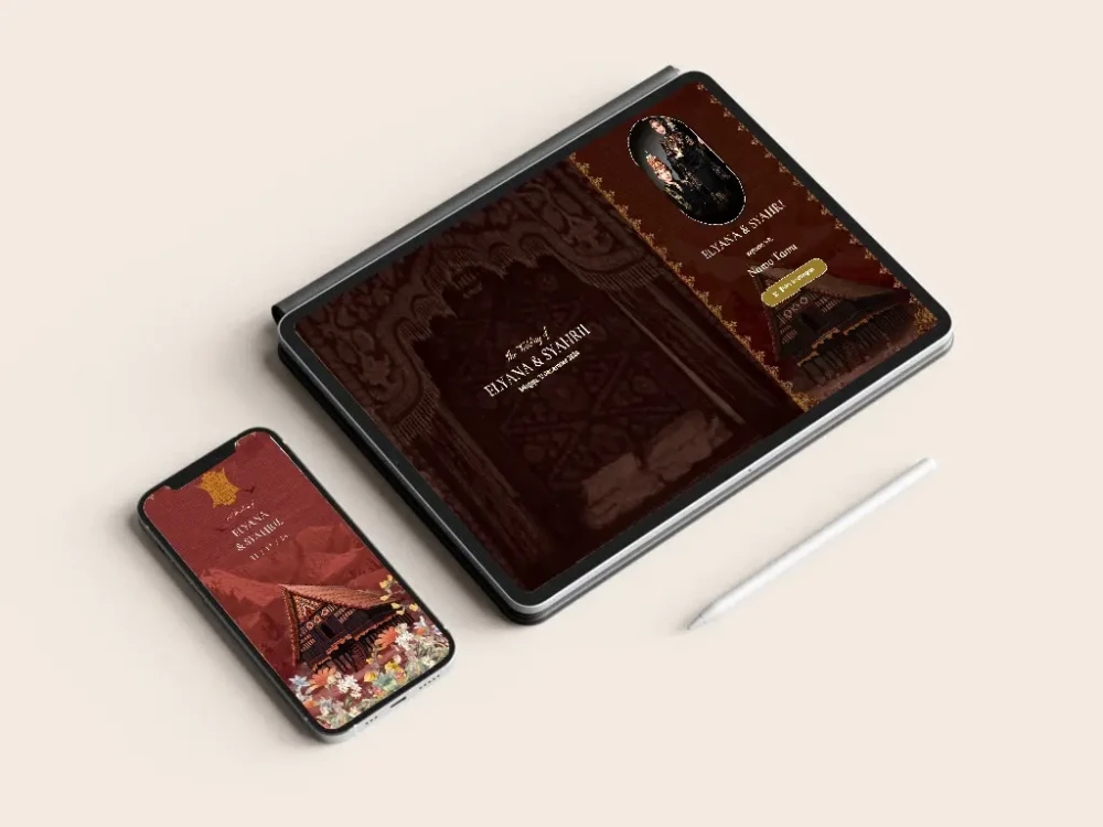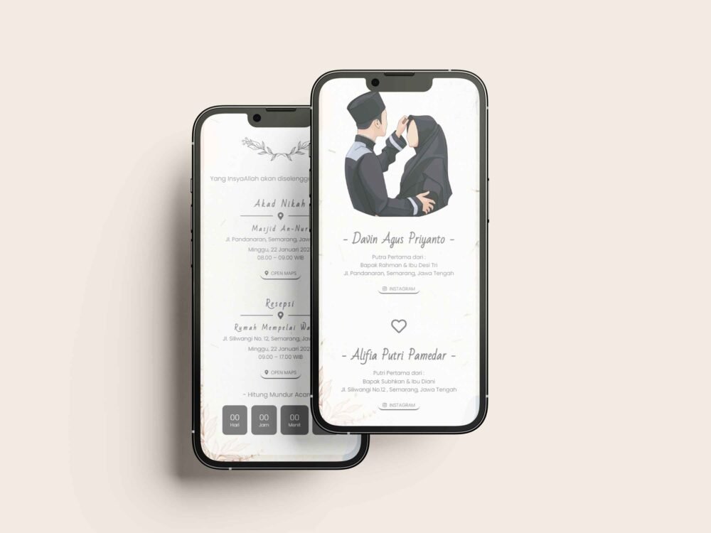 Undangan elegan dan profesional untuk mengekspresikan suasana acara pernikahanmu, dan merupakan cara terbaik untuk berbagi undangan dengan cepat dan simpel di sosial media.